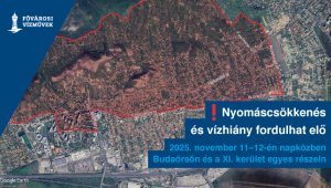 Nyomáscsökkenés és vízhiány Budaörsön, valamint a XI. kerület egyes részein november 11-én, kedden és 12-én, szerdán